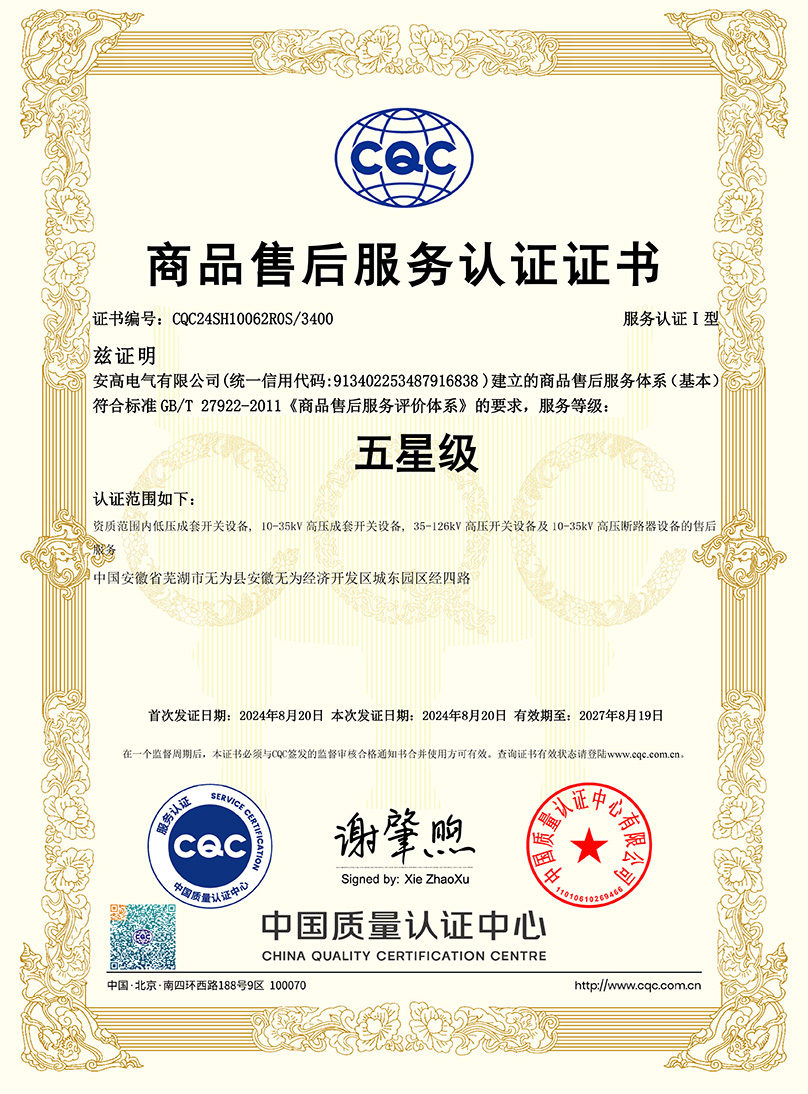 商品售后服務(wù)認(rèn)證證書