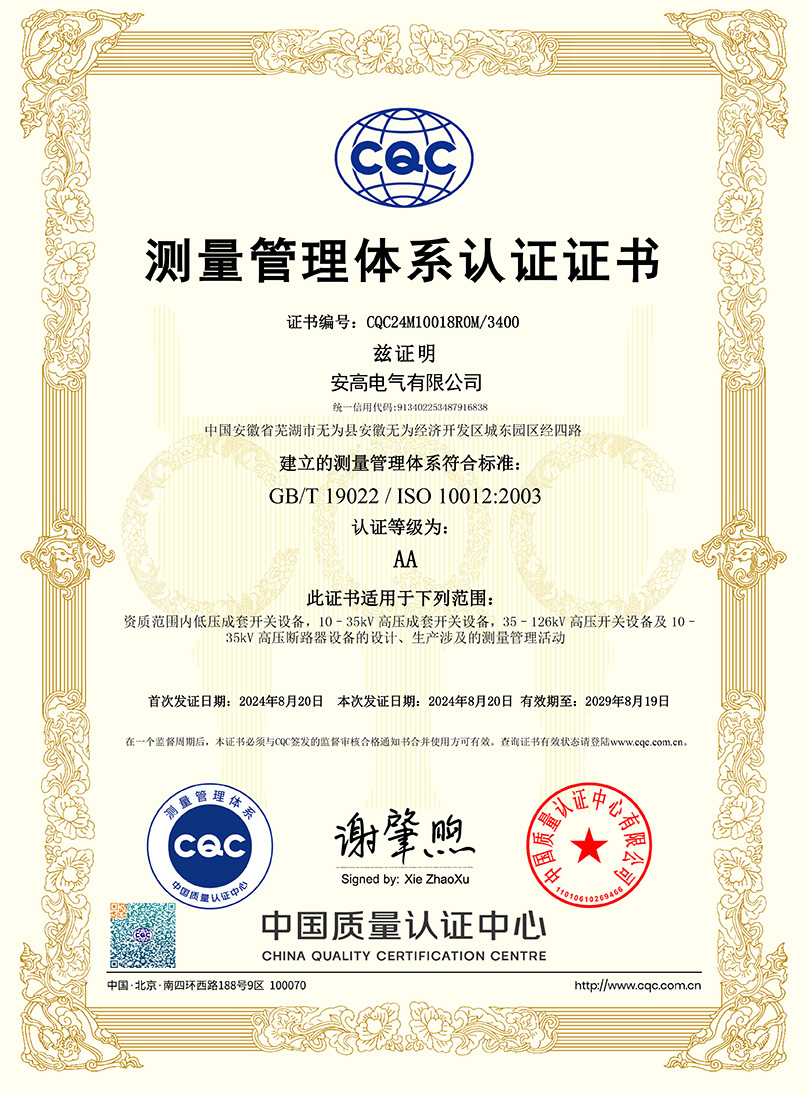 測量管理體系認(rèn)證證書