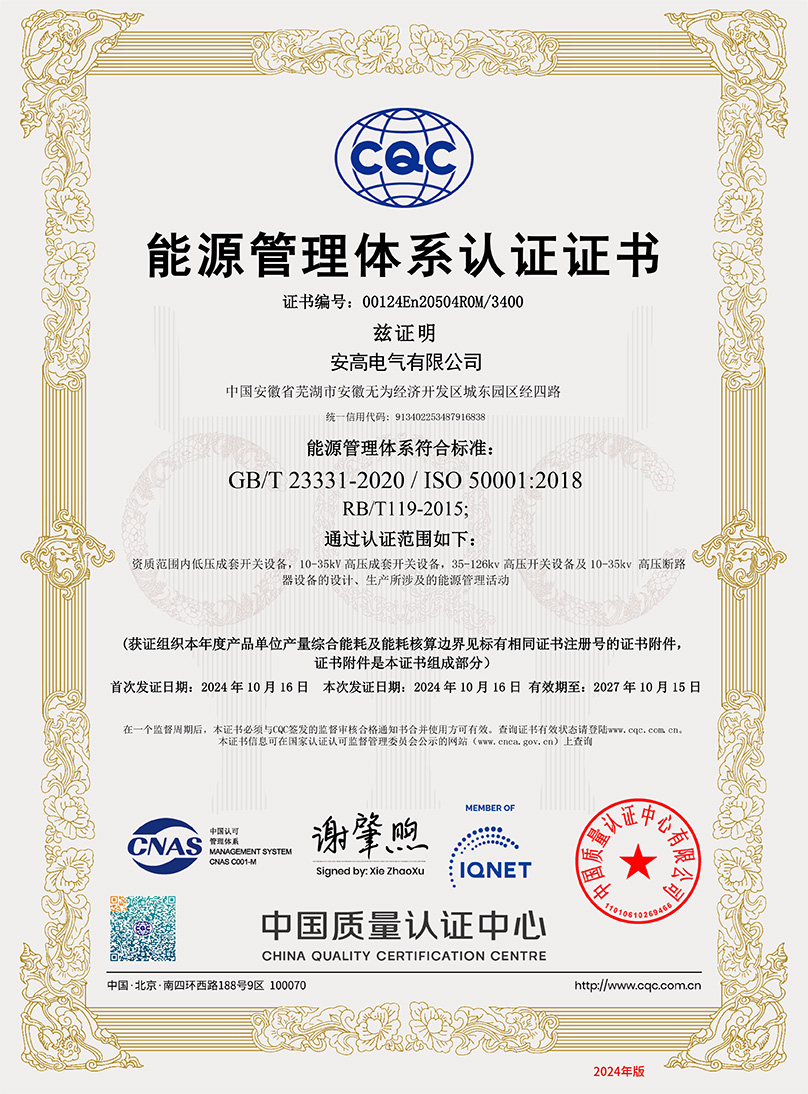 能源管理體系認(rèn)證證書