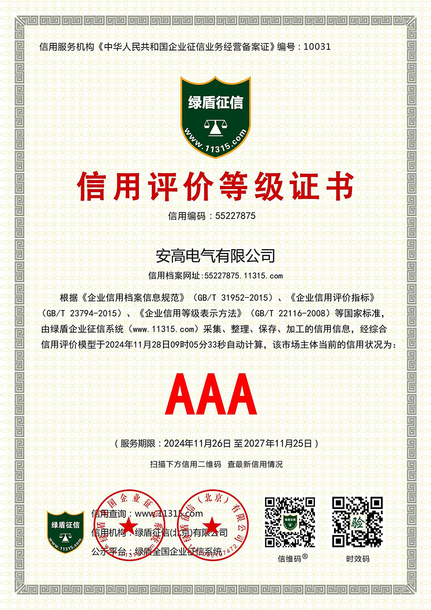 信用評價等級證書